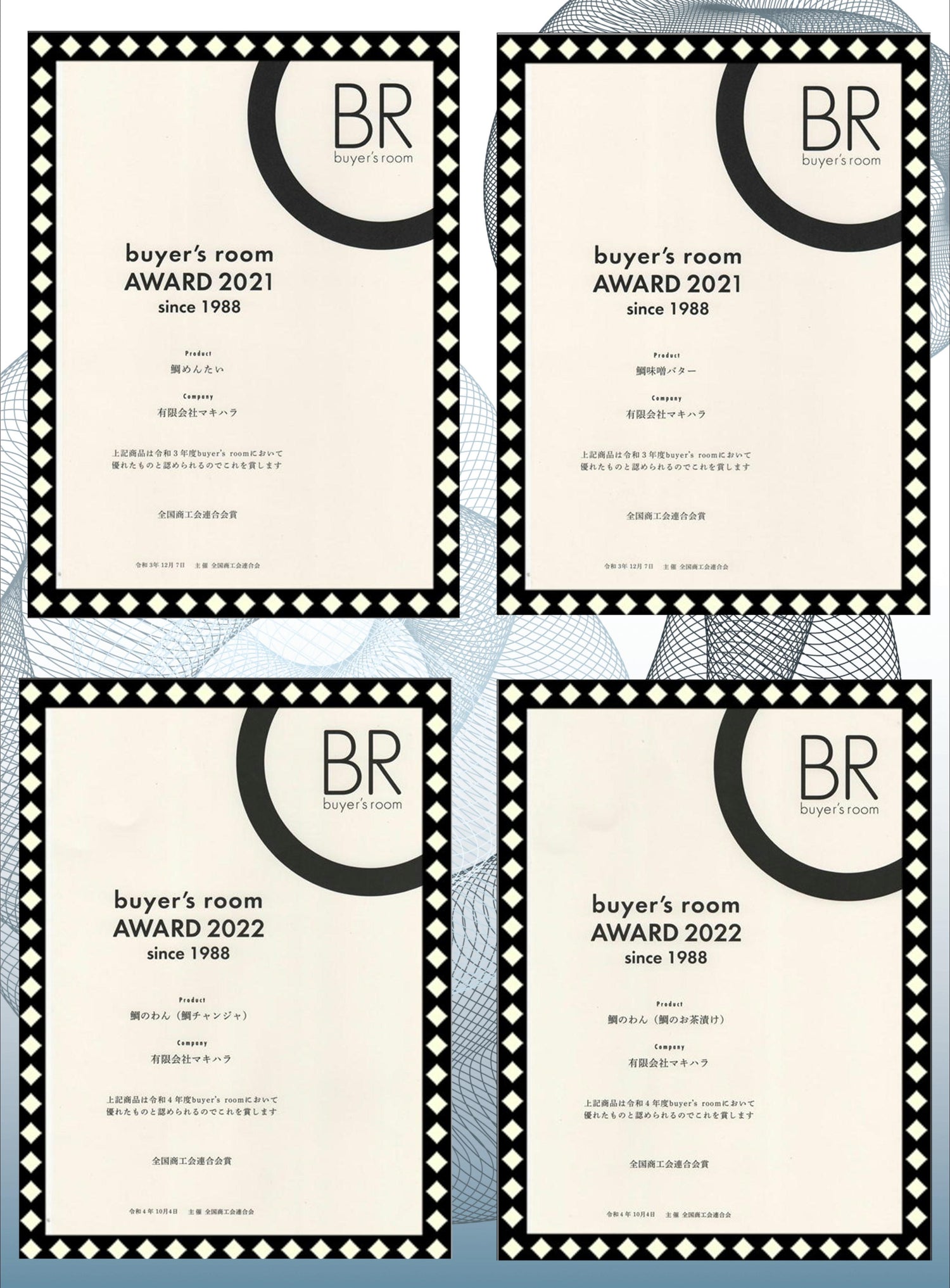 room2022』(全国商工会連合会主催)にて、当社の商品「鯛味噌バター」「鯛めんたい」「鯛チャンジャ」「鯛のお茶漬け」が全国商工会連合会賞に選定されました。